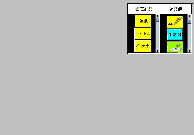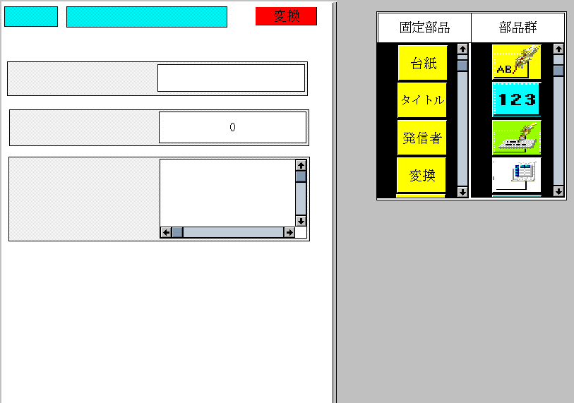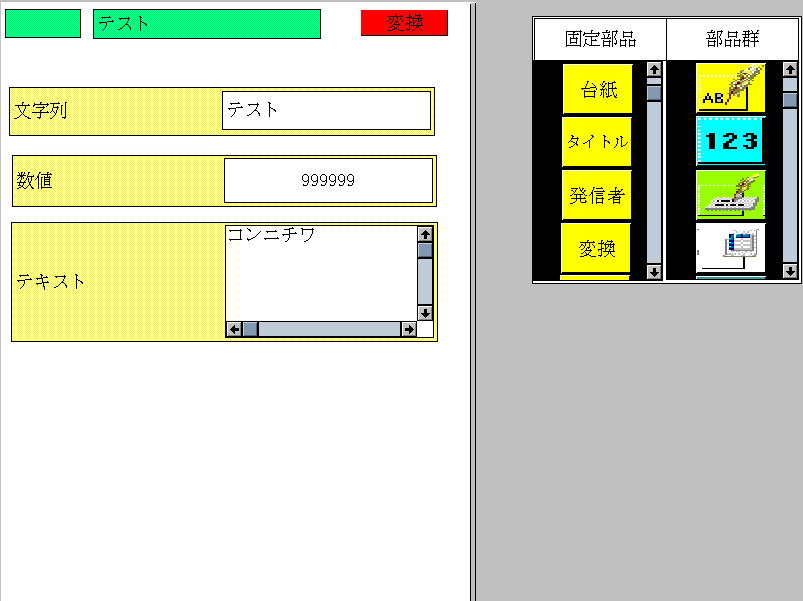 2.固定部品から、台紙、タイトル、発信者、変換をクリックすると