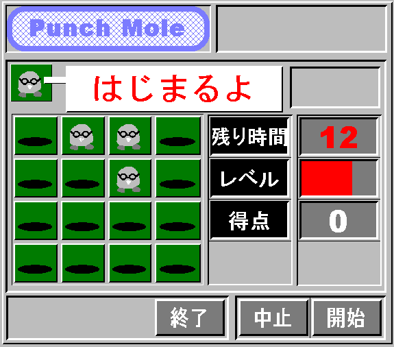 一定時間内に多くのモグラを叩いて(マウスでクリックして)下さい。
