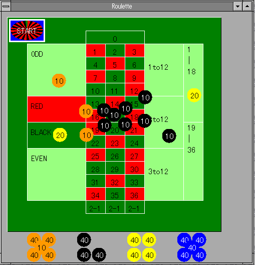 [START]ボタンを押すと、ルーレットが表示され、